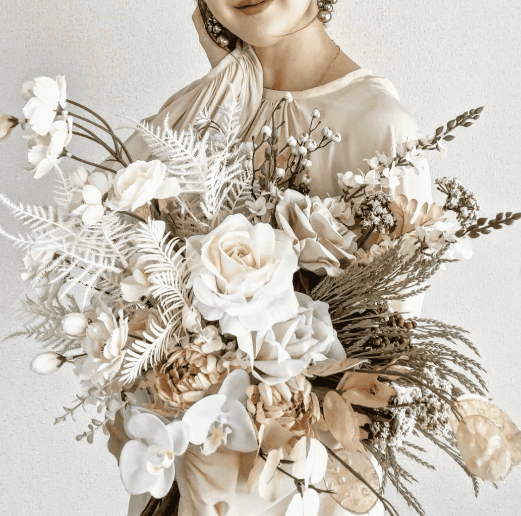 [Wedding Flower Shop一葉]でお作りしたアーティフィシャルフラワーブーケの中でも、特に人気のデザイン11つをご紹介します。 耐久性と芸術性に優れたアーティフィシャルフラワーなので、海外挙式や前撮り、そして卒花後の後撮りやインテリアとして、式後にウェディングブーケをお部屋に飾りたいとお考えのおしゃれ花嫁さんにおすすめです。