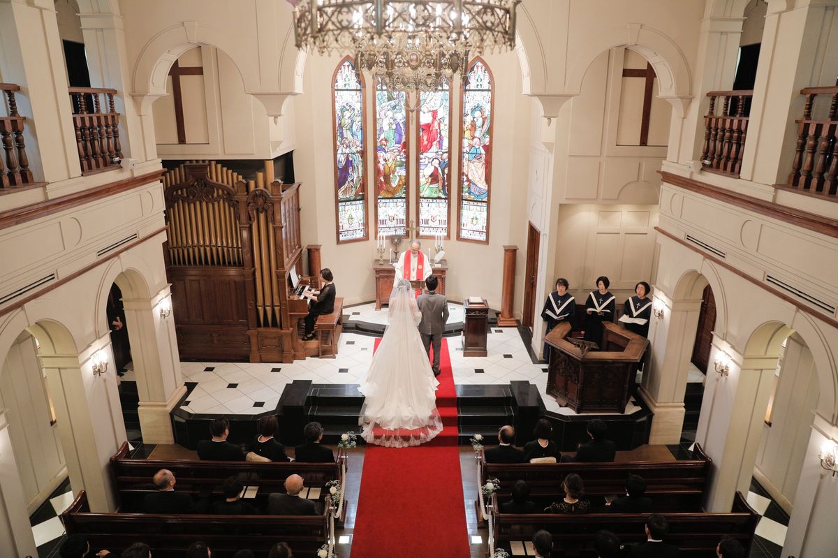 自分たちやゲスト目線のフォトが多くなりがちな挙式のフォトですが、上からの全体写真は特別な写真に*
