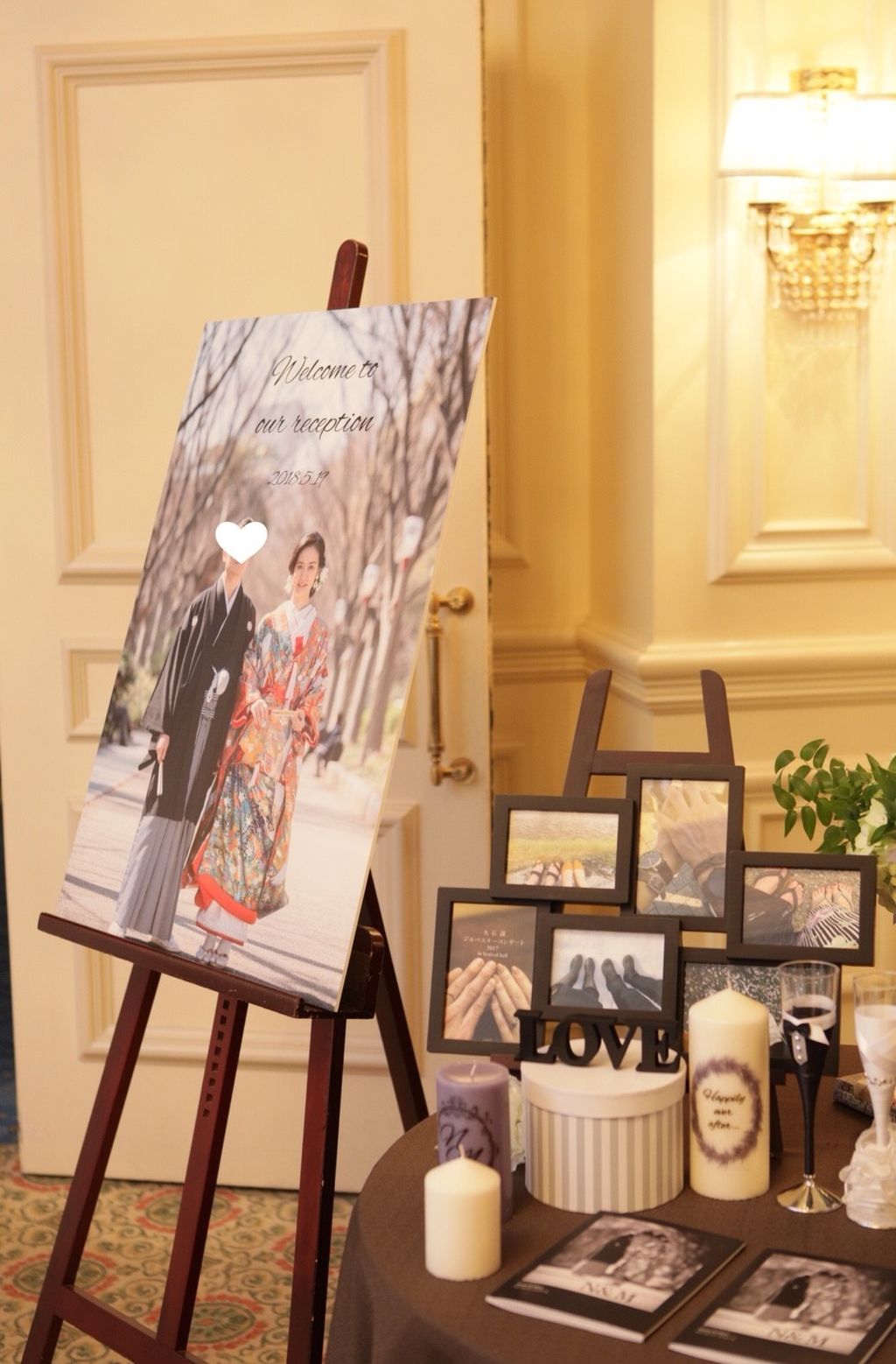 ウェルカムスペースに飾るものと言えば…ウェルカムボードやウェルカムドールなどありますが、合わせてお二人の写真を飾るという花嫁さんは多いのではないでしょうか?