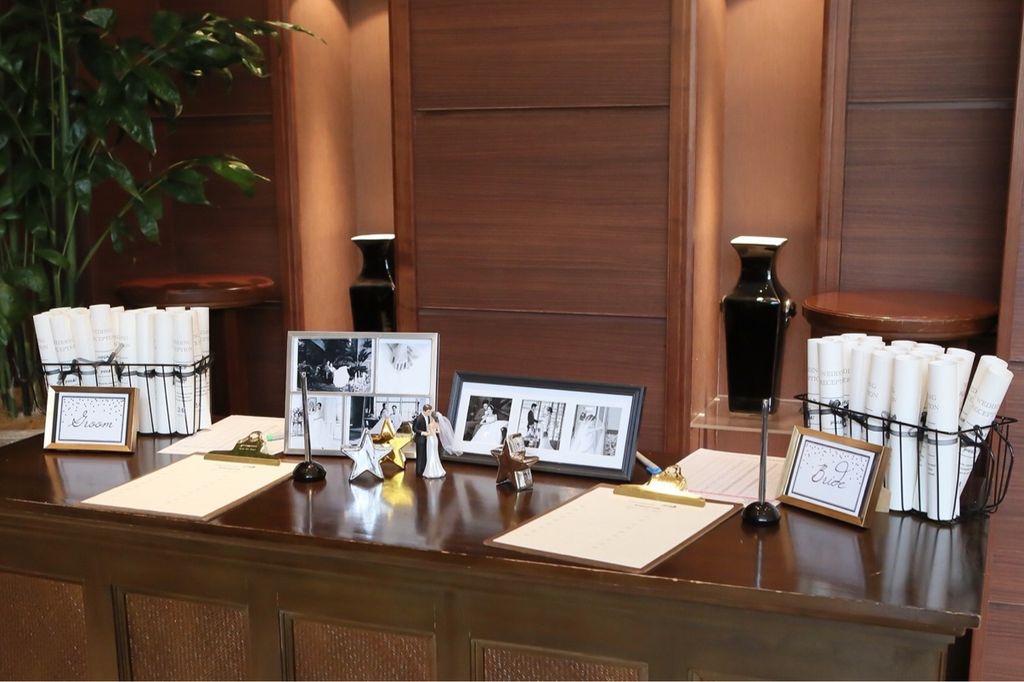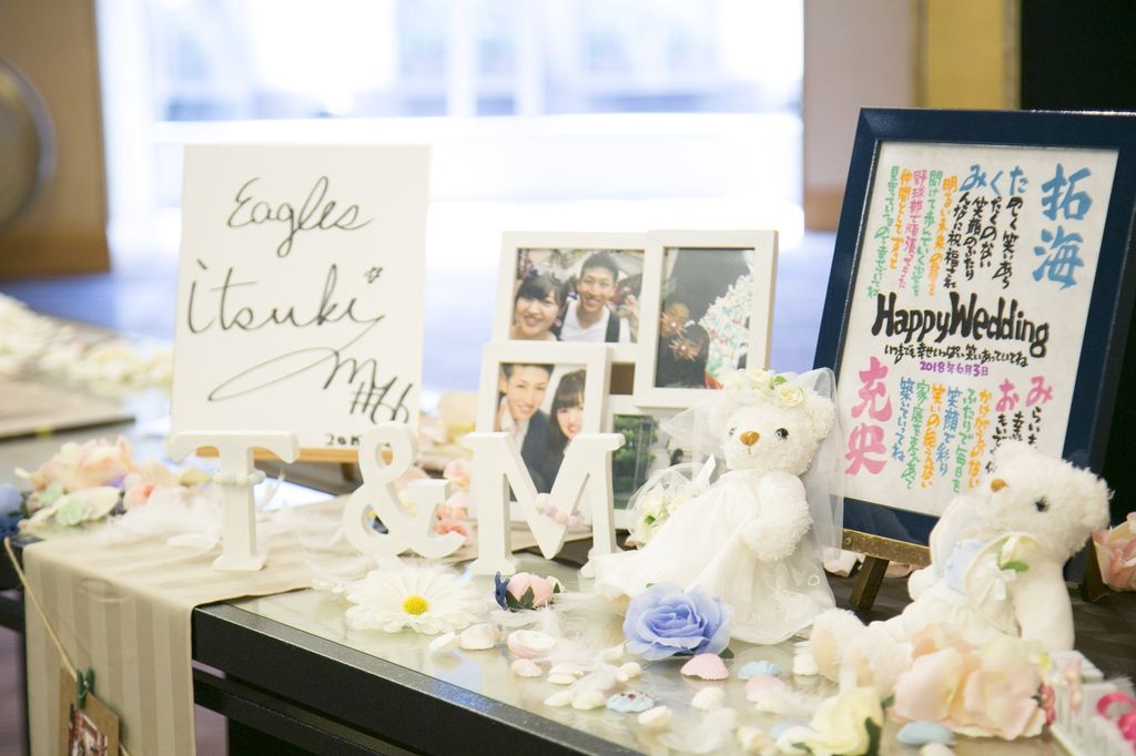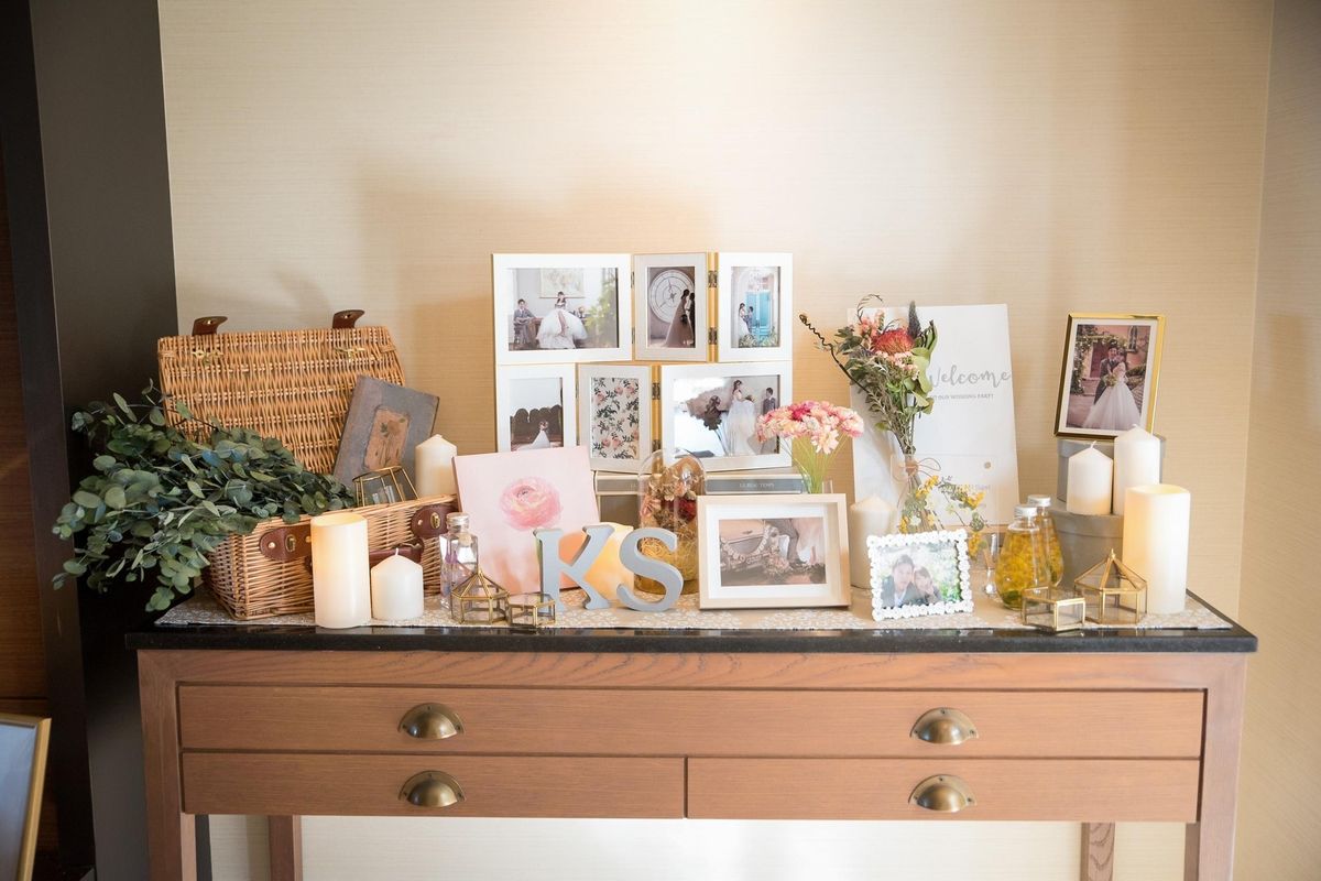 こちらもウェルカムボードやフォトフレームをウッド調のものを使用しているので、まとまりのある雰囲気になっています