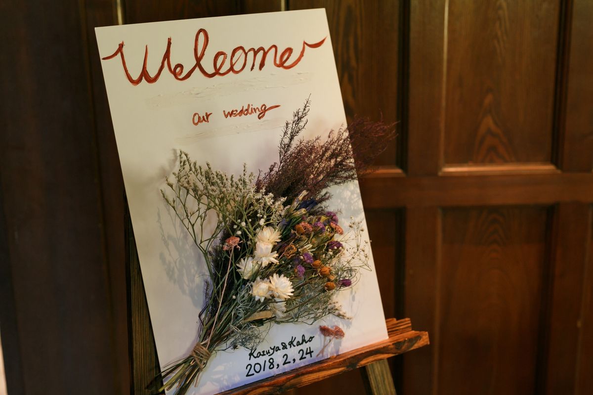 人気の標本風ウェルカムボードは文字を書いてお気に入りのドライフラワーを貼るだけ♡