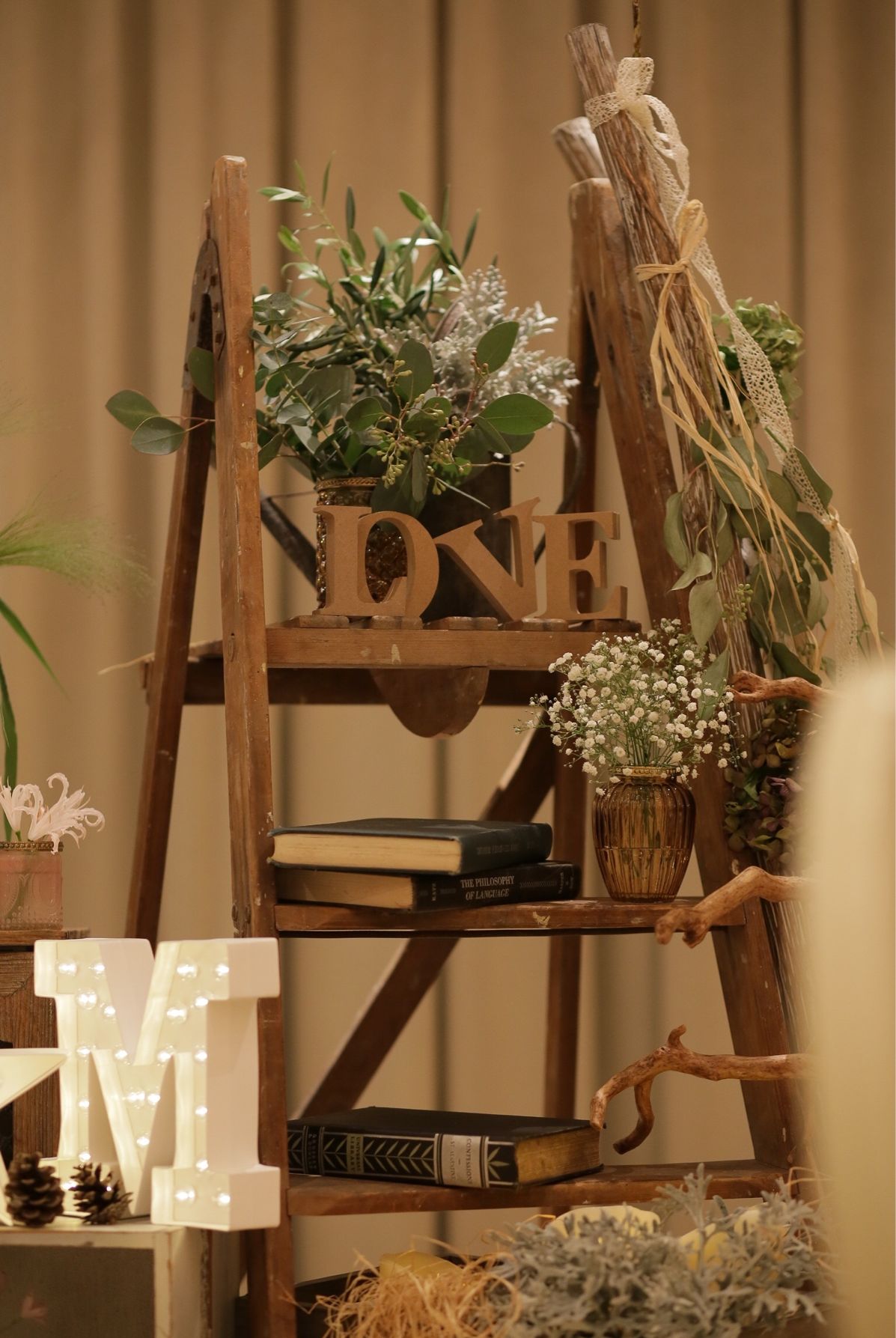 ウェルカムスペースなどにラダーラックがもともと置いてある会場も多いので、その装飾にも洋書は使えます。