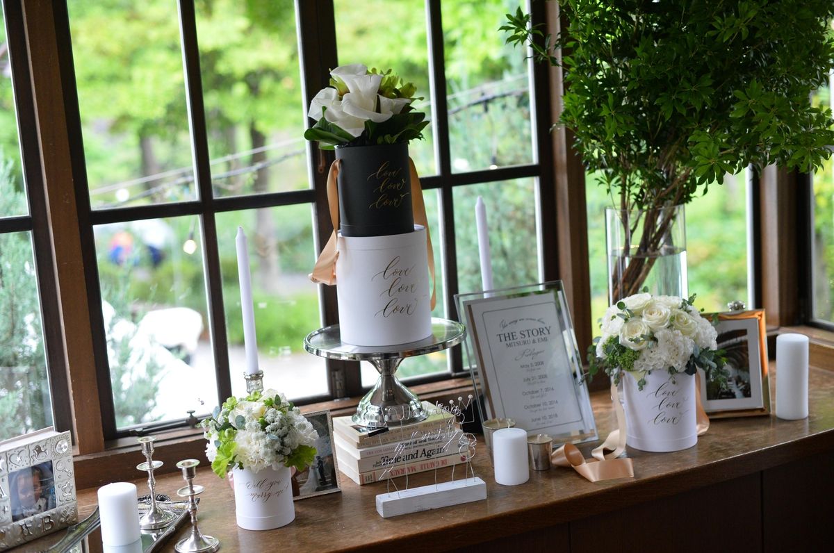 ウェルカムスペースだけでなく、ゲストテーブルの装飾やリングピローとしても使えたりとそのアレンジの仕方は無限大…!