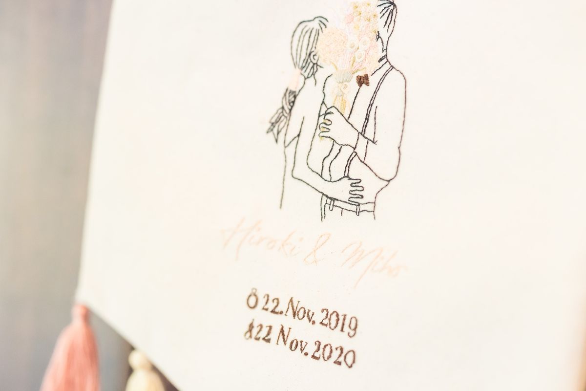 新郎新婦のお二人も刺繍になっているウェルカムボード♡