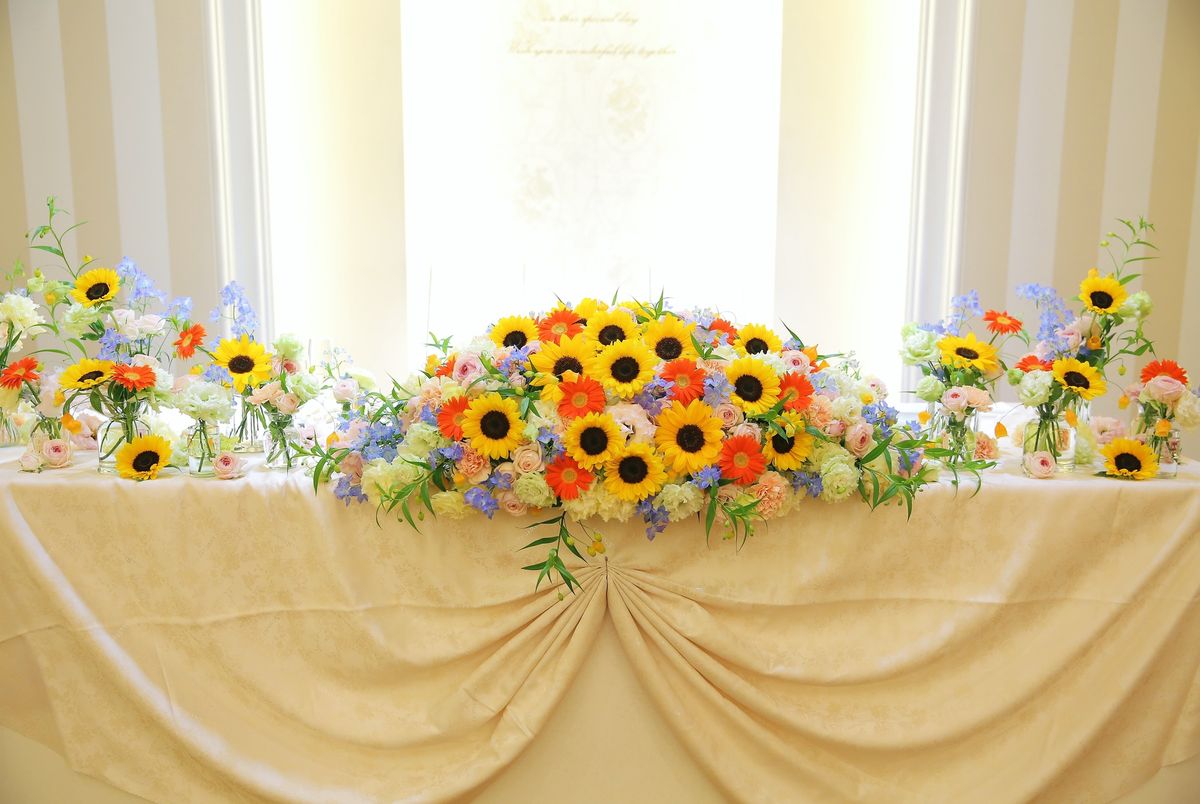 いろんなお花をミックスさせた高砂装花*
