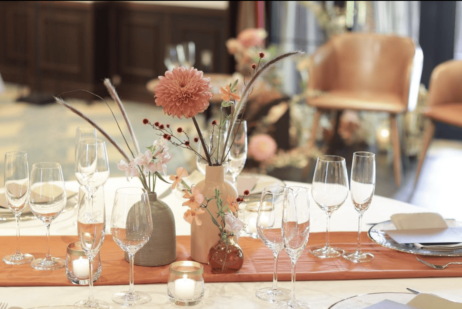 テラコッタカラーのテーブルランナーとの相性抜群♡