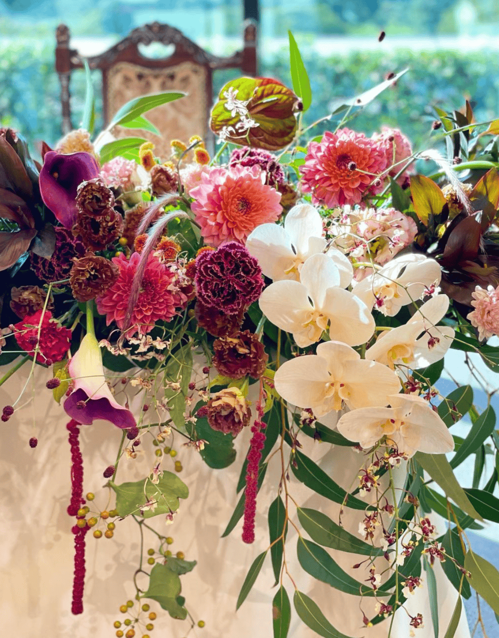 トレンドのエアリー装花でもダリアは大活躍♡