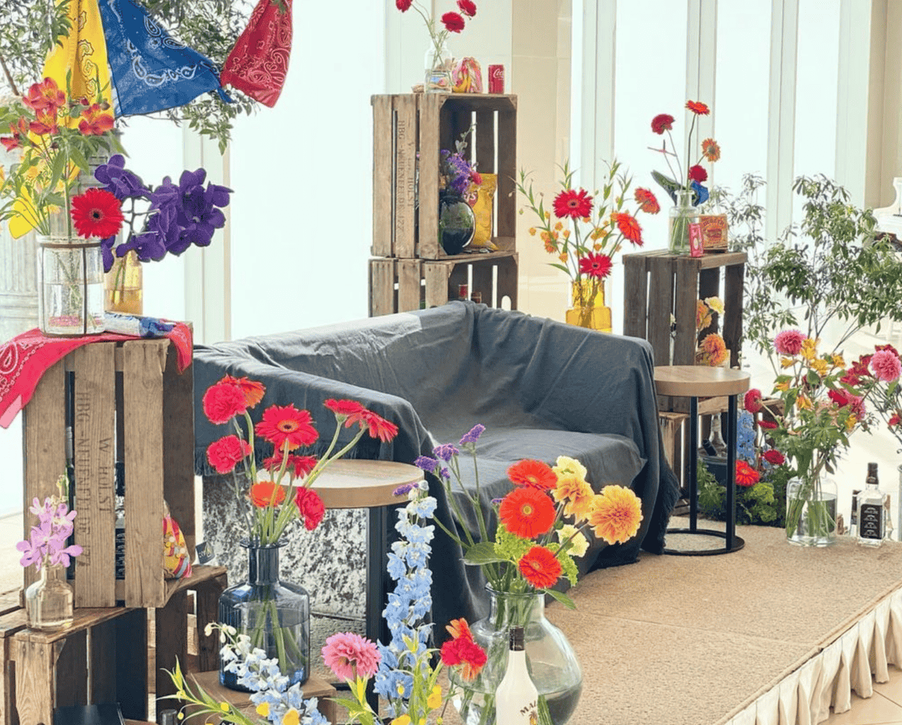 ガーベラがたっぷり使われたアメリカンポップな装花♪