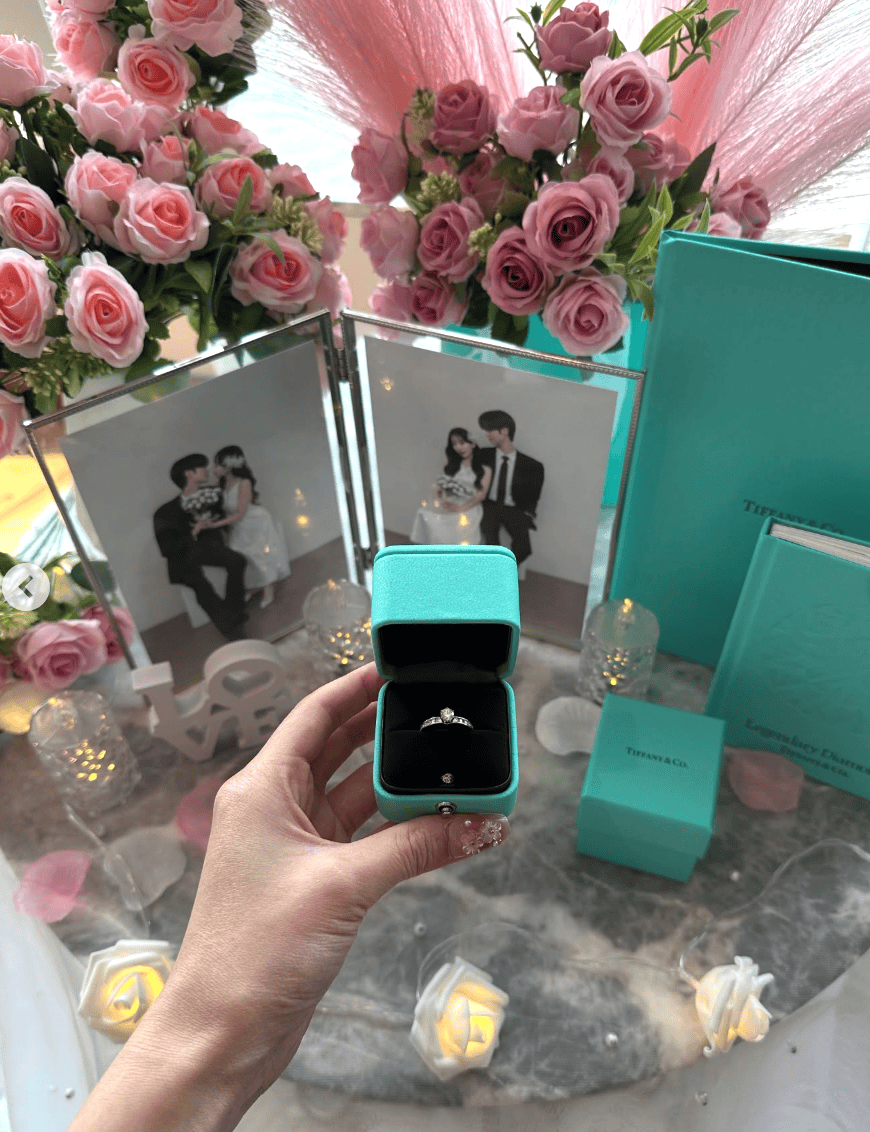 「婚姻届+結婚指輪を手にはめて」ロマンチックに♡
