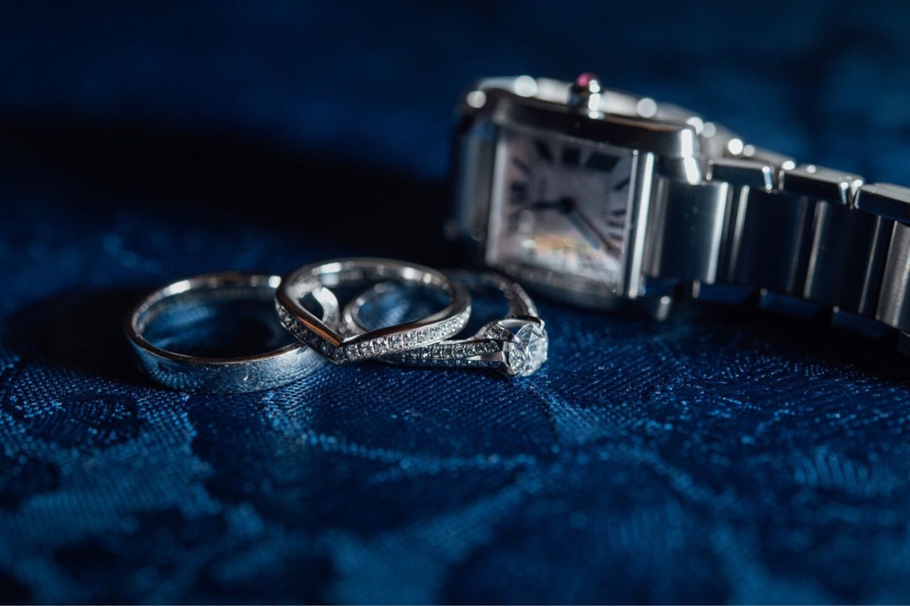 仕事中やファッションアイテムとして普段から身につけられる腕時計を婚約指輪の代わりとするのも人気*