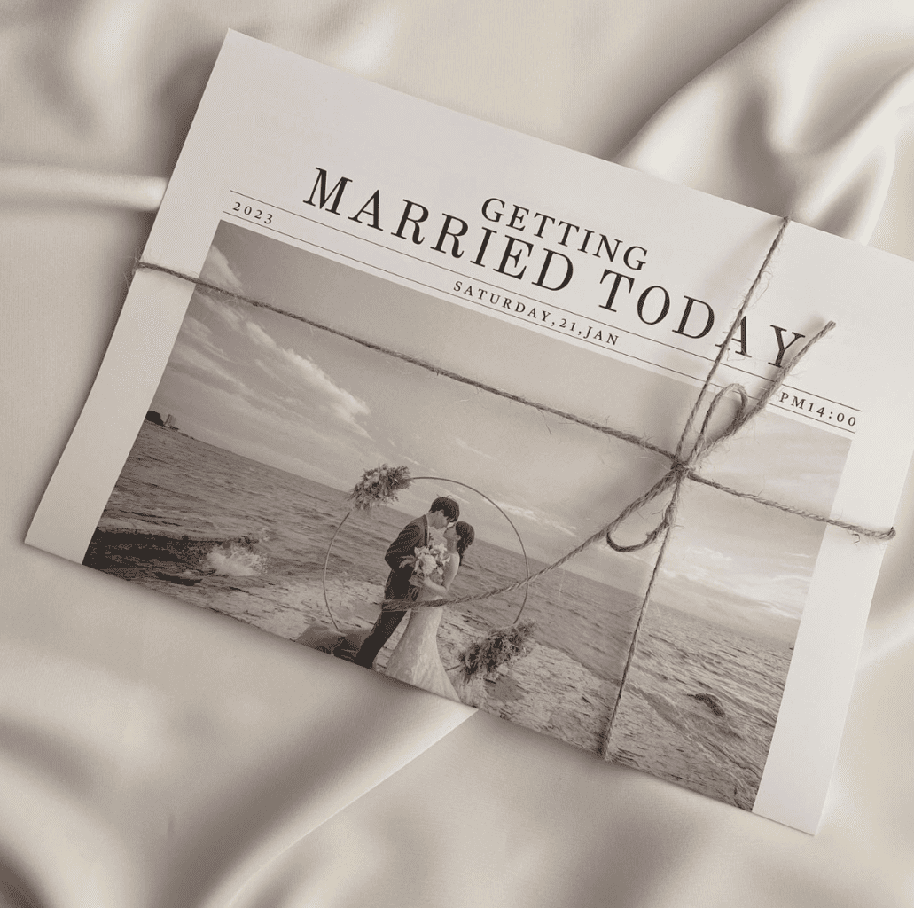 お洒落な前撮り写真を大きな紙面に載せて、お二人だけのオリジナル”wedding newspaper”をご用意しませんか?
