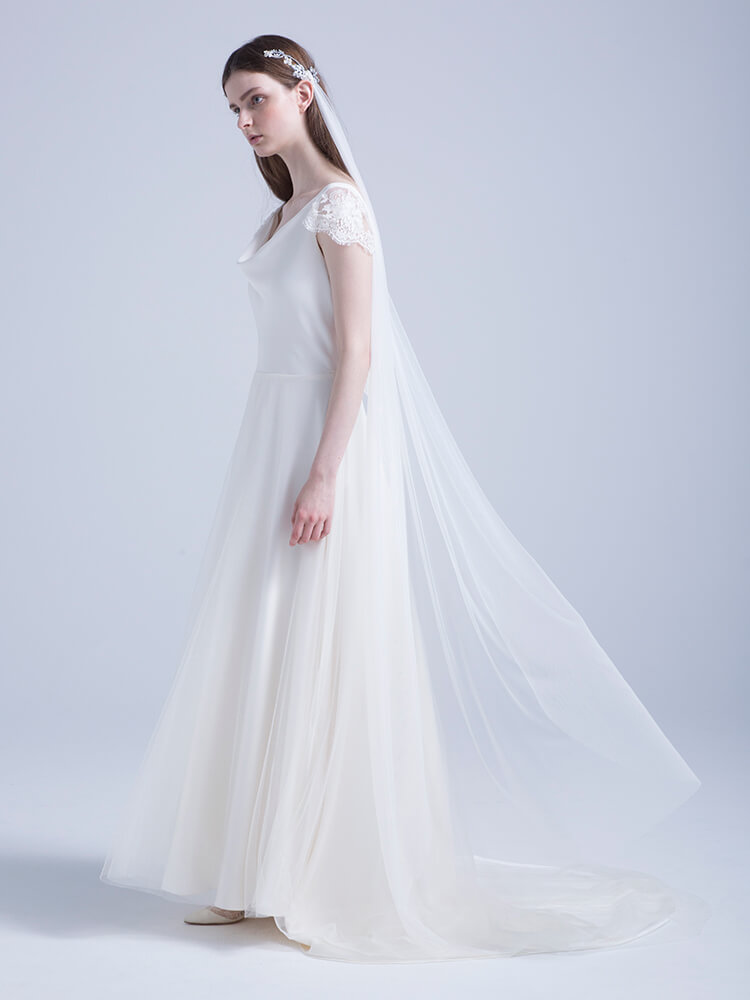 三角のトレーンもとっても美しく、ハーフペニーの中でもピオニーは今、花嫁さんたちから密かに注目されています♩