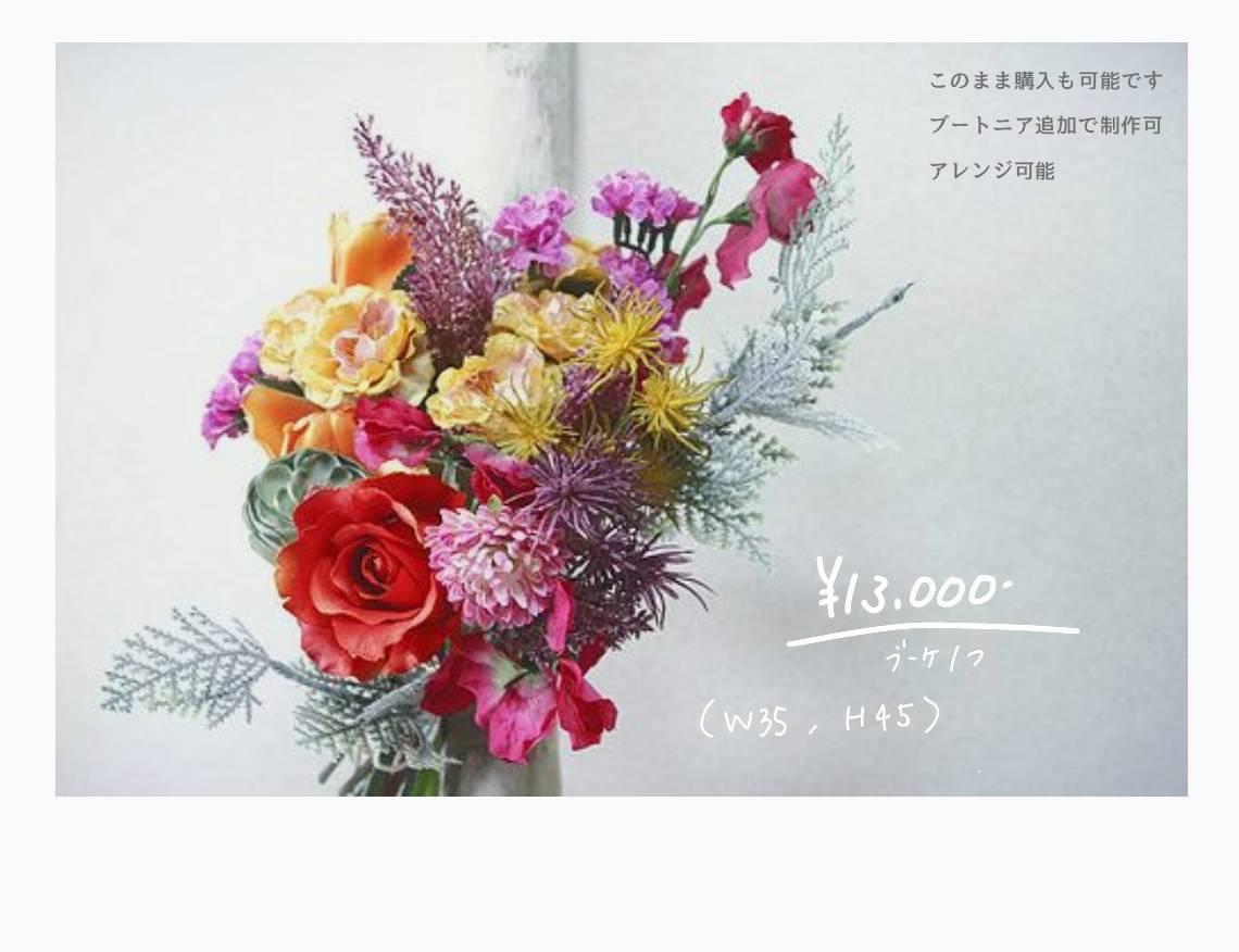 こちらの作家さんのアーティフィシャルブーケは、低価格で色んなアレンジが可能。
