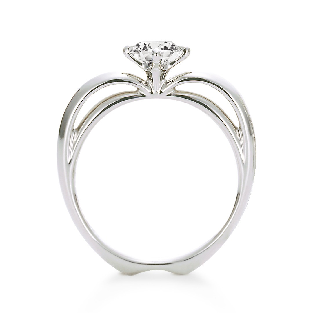 石座部分を側面から見るとリボンモチーフが隠されているキュートな婚約指輪です。リボン部分はピンクゴールドになっているので、さりげなく視線を集めます。
