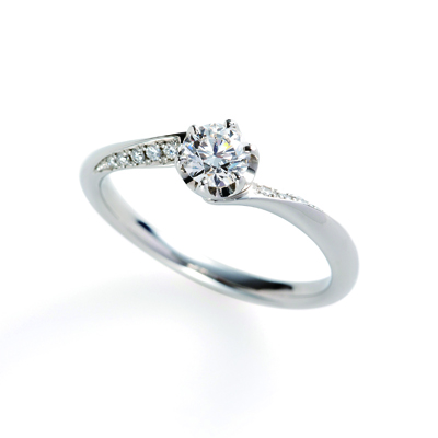 両サイドのダイヤもアームのカーブにセッティングされていて、表情豊かに指を彩ってくれます♪同じシリーズの結婚指輪とぴったり重なるので、重ね付けコーデも楽しめるデザインです。