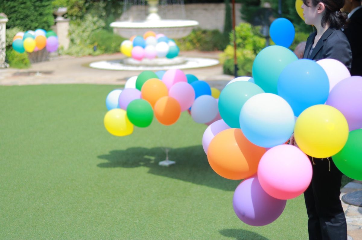 たくさんのバルーンを束ねて、数か所に散りばめると、もこもこした見た目になってとてもカワイイですよね♡