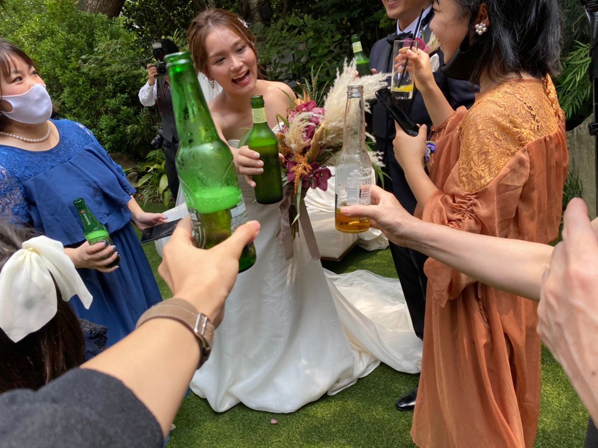 披露宴前にお酒を飲んで緊張感をほぐしてもらう♪