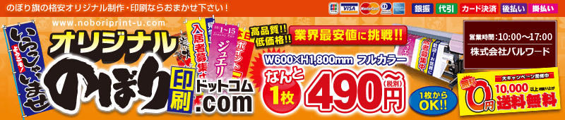 | 素材 | 計6種類 ・布素材①(テトロンポンジ) ・布素材②(トロマット) ・ビニール素材 ・合成紙素材 ・合成紙+グロス加工 ・合成紙+マット加工 ※価格が安い順(加工のあるものは同一価格) |