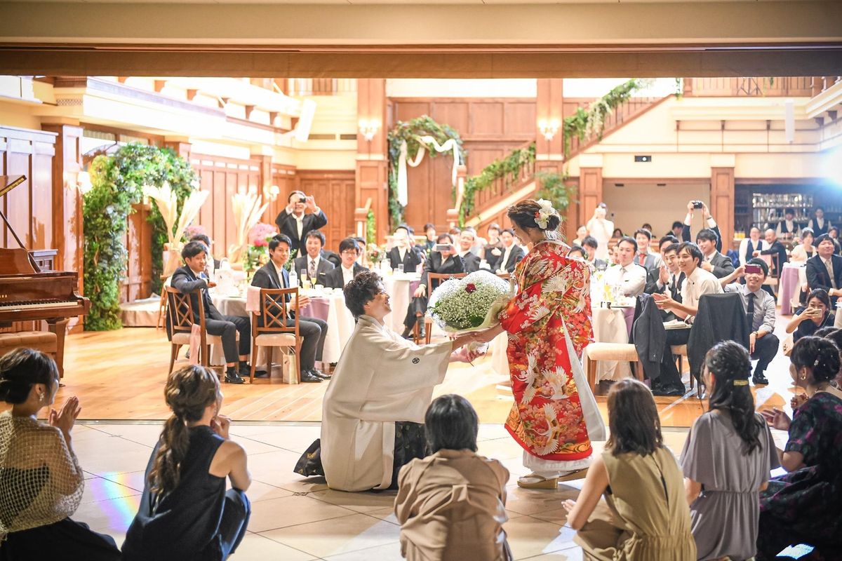 映画のテーマ曲やミュージカルナンバー、お相手が好きな曲でダンスを必死に練習するのも良し、簡単な振り付けにして沢山の人に参加して貰うのも良し!ご披露宴の雰囲気もより一層楽しく、盛り上がること間違いなし!!