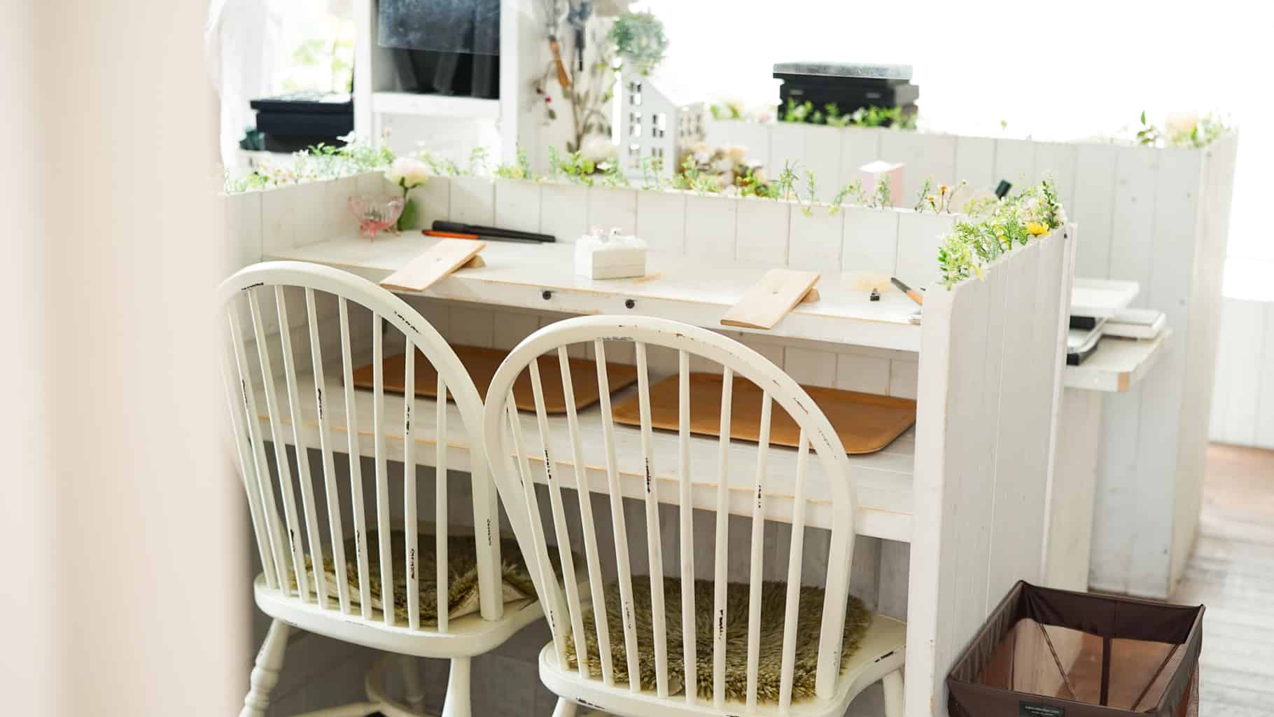 二人の思い出がステキなものになるように、店舗の中は年に6回模様替えをされており、明るく華やかな工房はサロンのよう♡