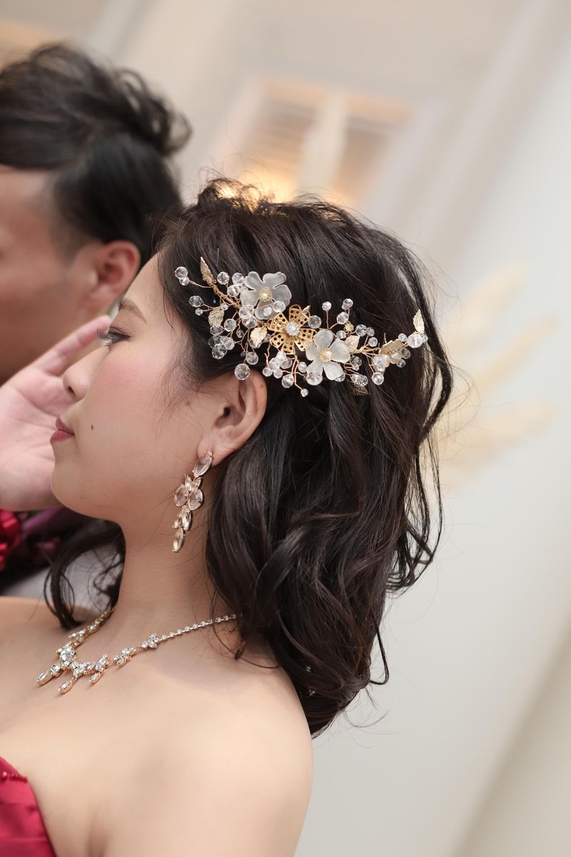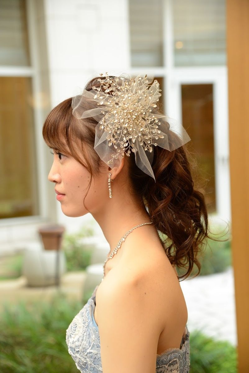 ビジューのヘッドドレスとの組み合わせが華やか♡