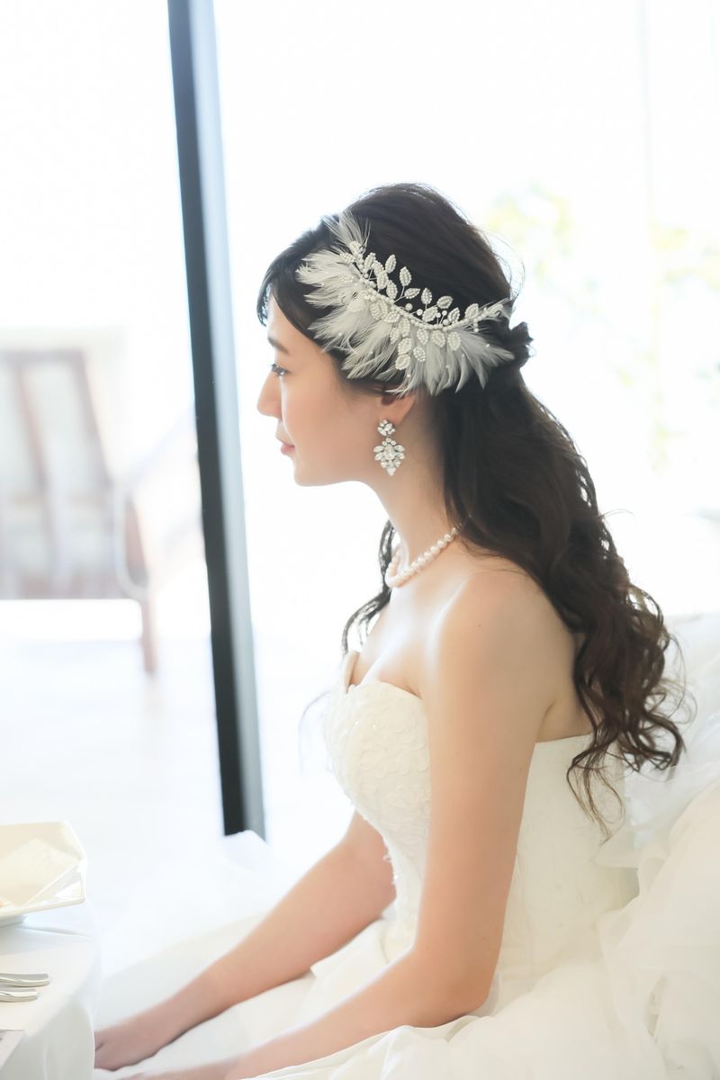 フェザーのエアリーさがウェディングドレスによく合いますね*