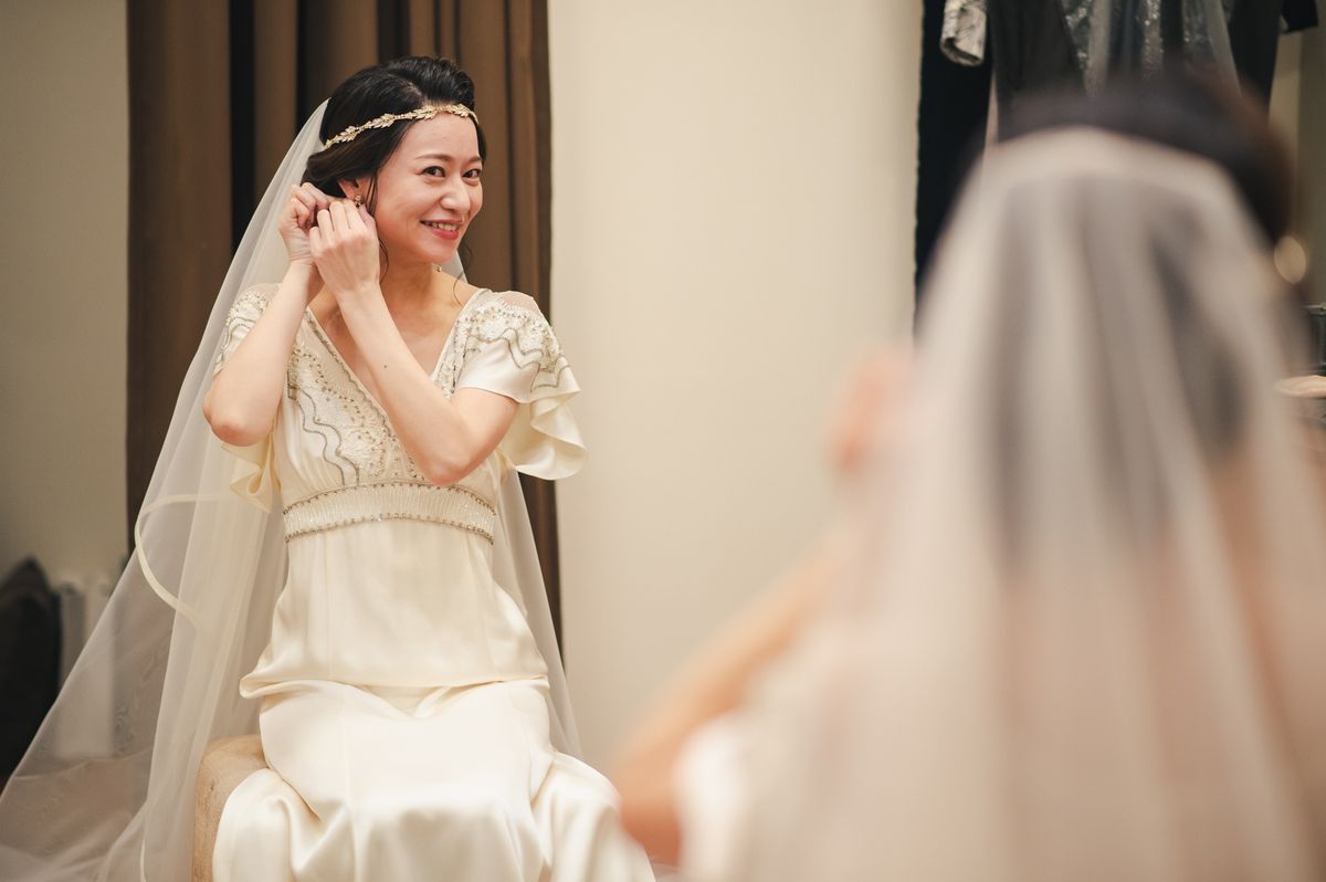 トレンドのパールカチューシャでとってもガーリーな花嫁に♡
