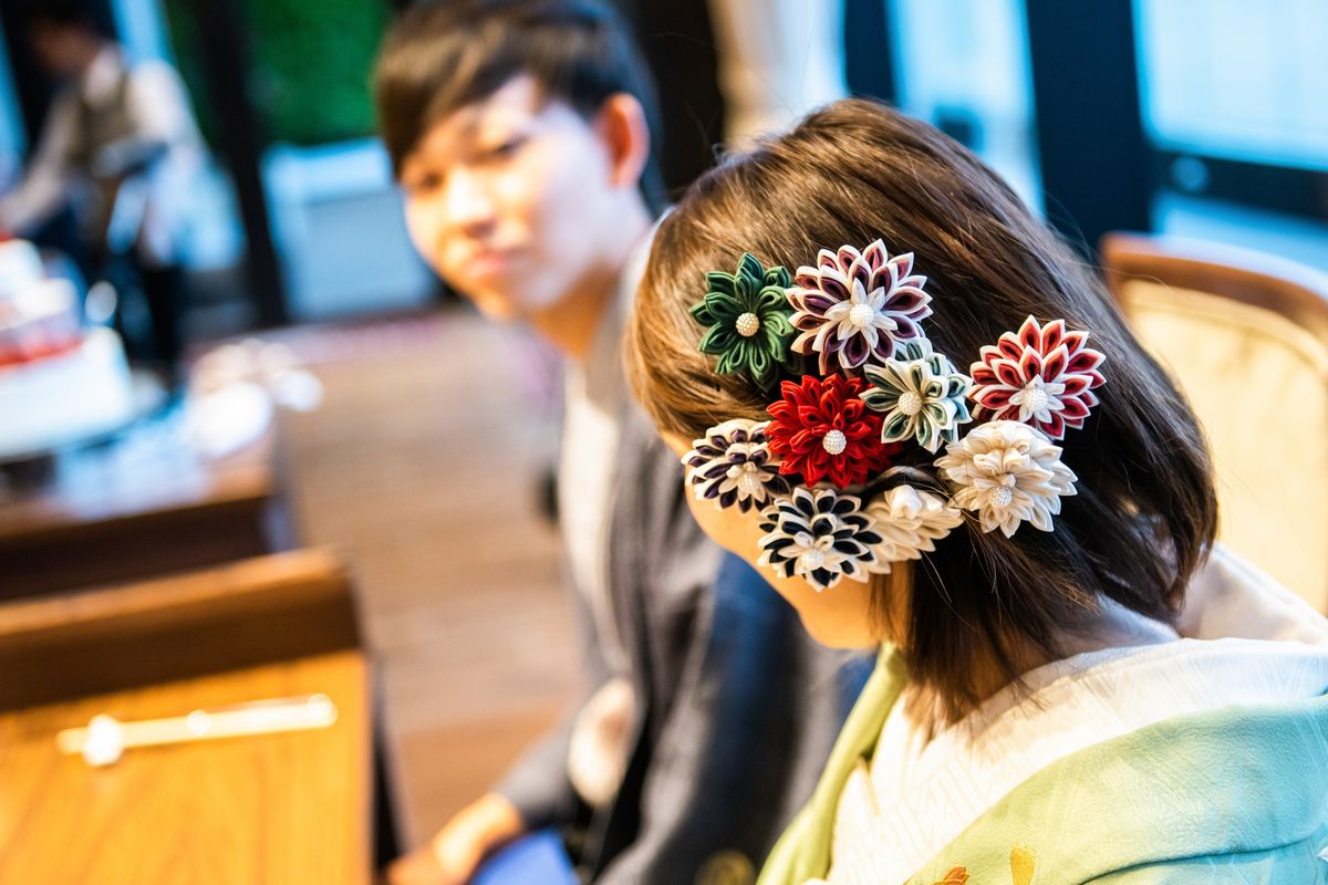 色打掛にぴったりなつまみ細工の繊細なディティールもコサージュならでは♡