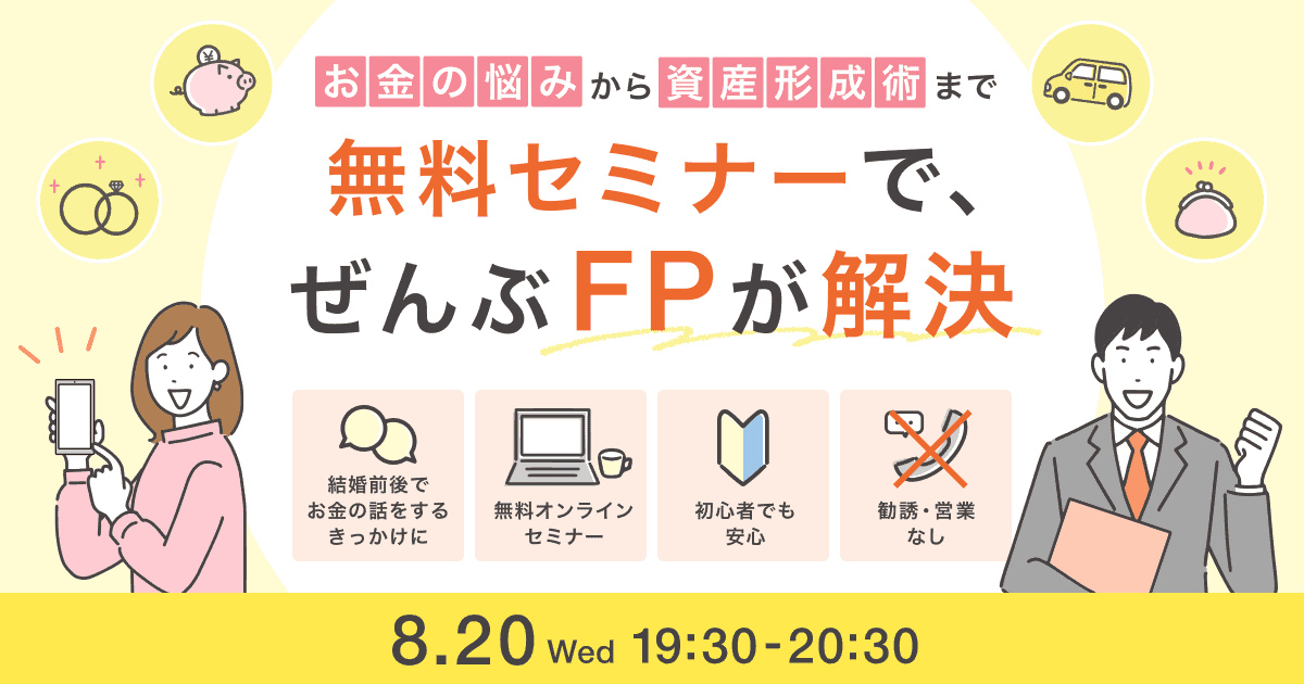 【残枠わずか】11/19(水)無料オンラインセミナー|結婚前後に聞くべき「賢いお金の貯め方・増やし方」をプロが徹底解説!最大60万円もらえる結婚助成金は要チェック!