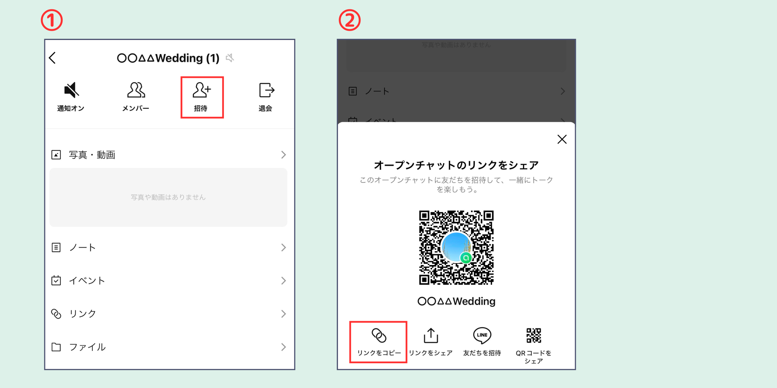 これでオープンチャットの開設や設定が完了したので、共有用のリンクとコードなどを送ってゲストに画像を送ってもらうだけ!