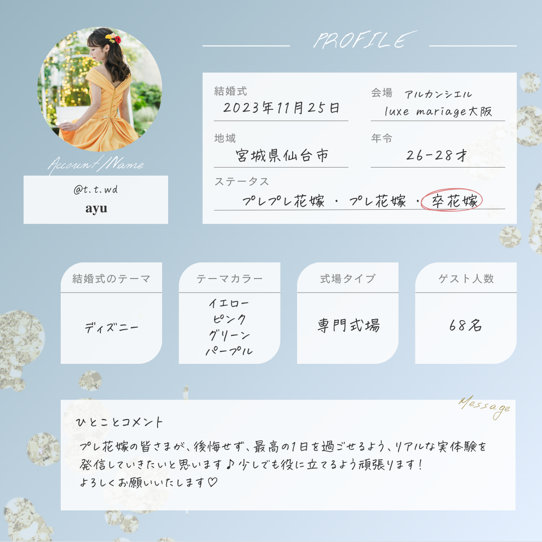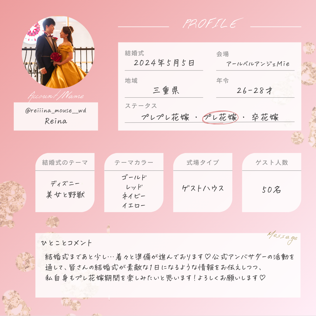 など、結婚式に関する準備や当日レポを公式アンバサダー限定で連載できます♡