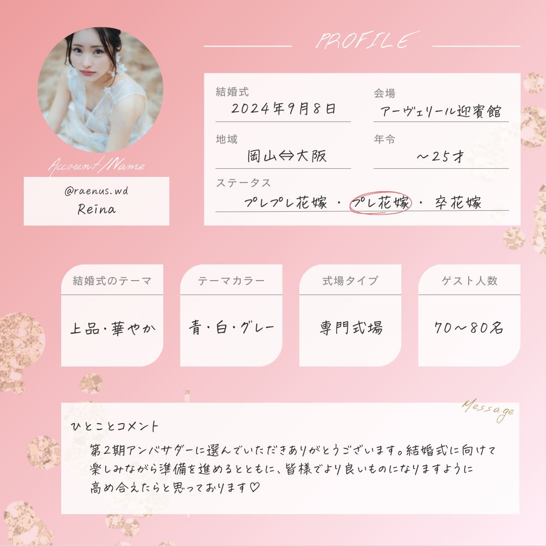 ウェディングニュース公式アンバサダーとは、私たち編集部と一緒にインスタやアプリなどを盛り上げてくれる公式メンバーのこと♡