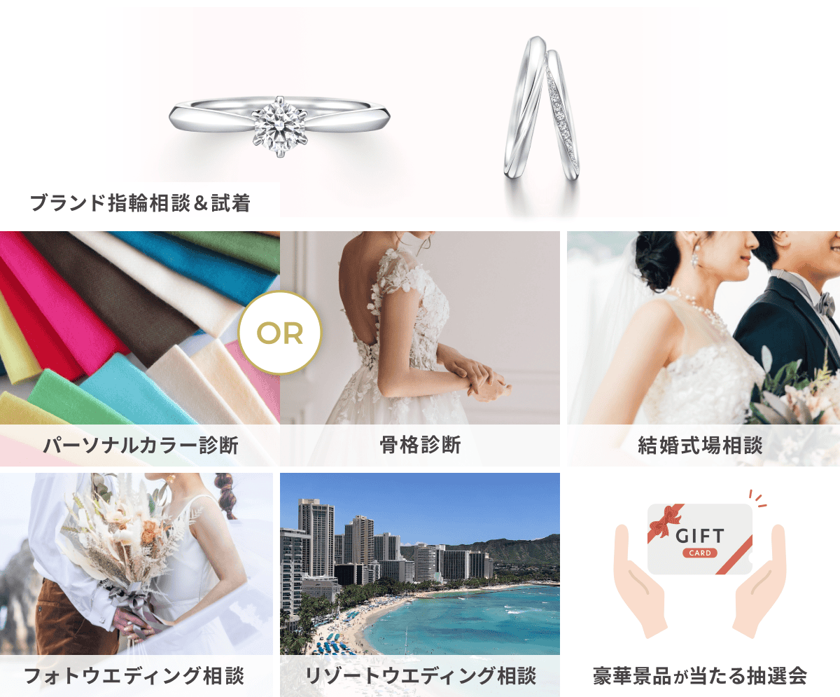 【無料で楽しめる】指輪選びのヒントになるカラー・骨格診断や式場相談も