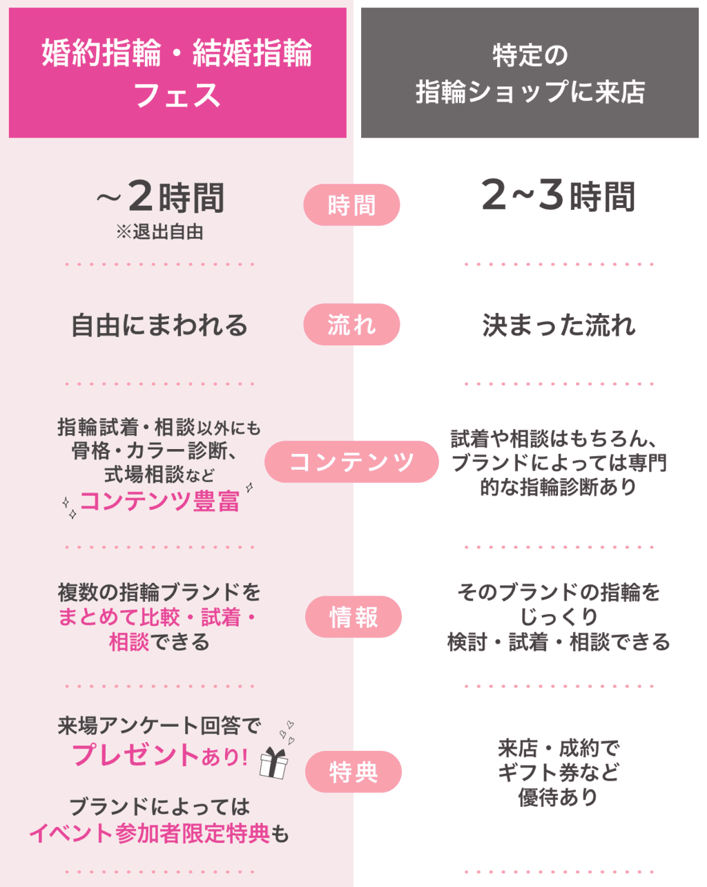 ▼婚約指輪・結婚指輪フェスとショップ来店の違い