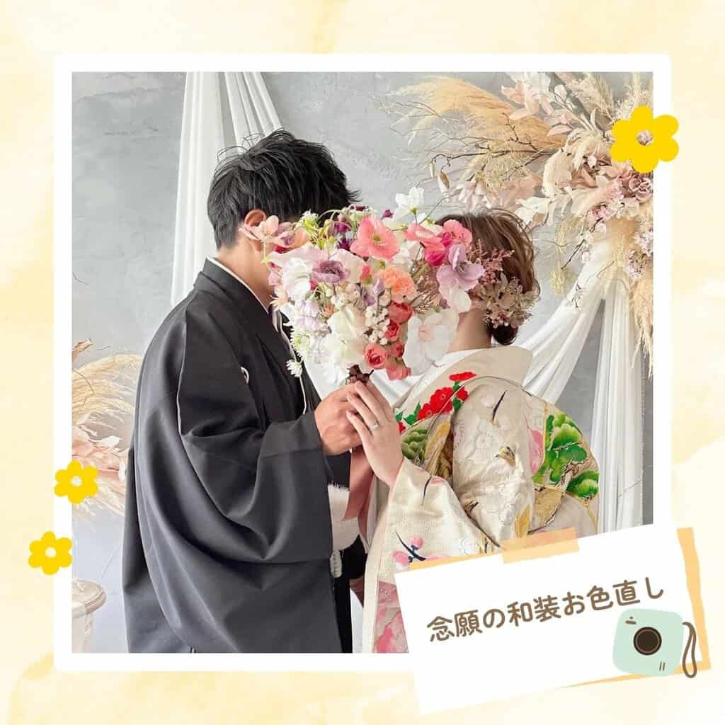 がらりと雰囲気を変えて、カラードレスや和装にチェンジしたり、違うタイプのウェディングドレスにしたりなど、様々なパターンがあるお色直し♡