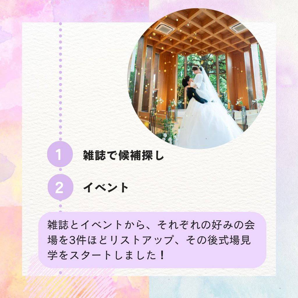そこで、アンバサダーの皆さんがどのような方法で候補の式場をリストアップしたのか教えてください♡