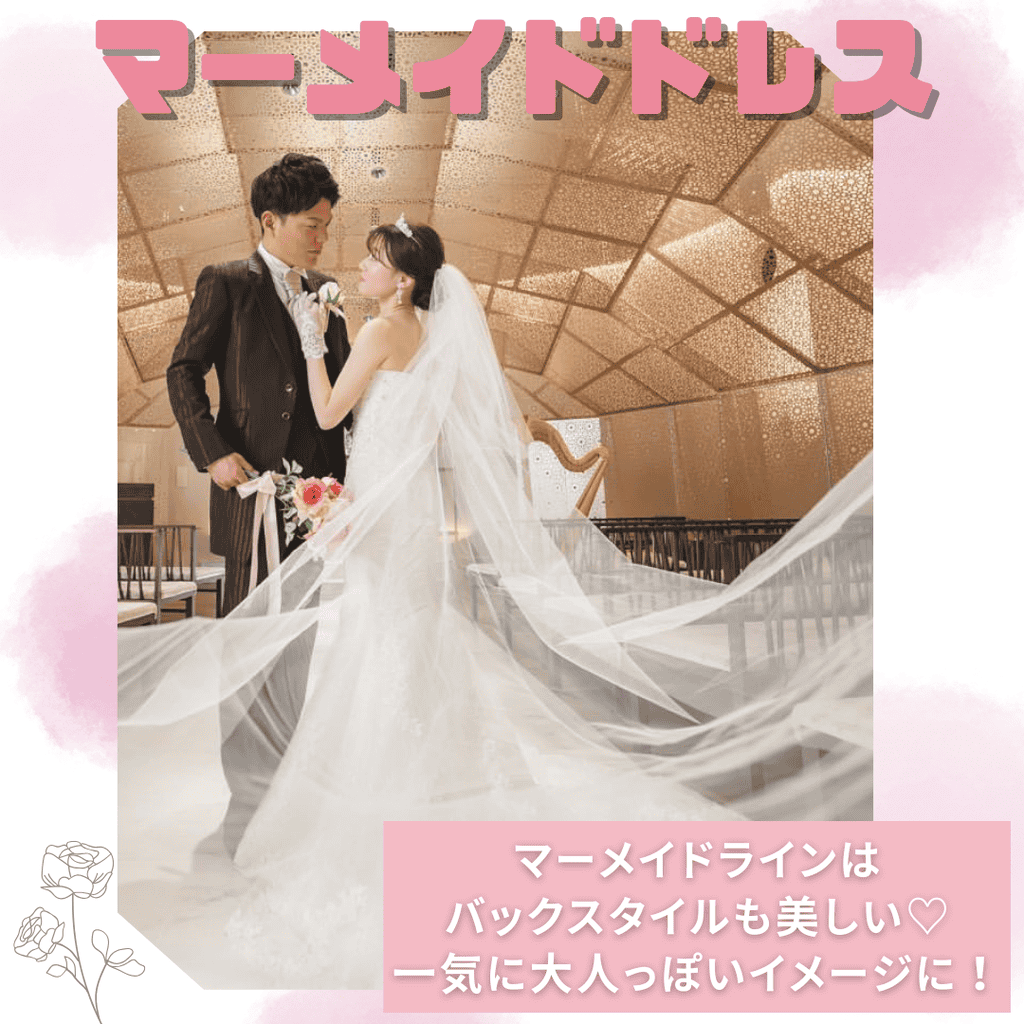 などたくさんのデザインがあります。それぞれ似合う体型や式場の雰囲気などがあるので、実際に選んだドレスのデザインと選んだ理由やこだわりポイントを教えてください!