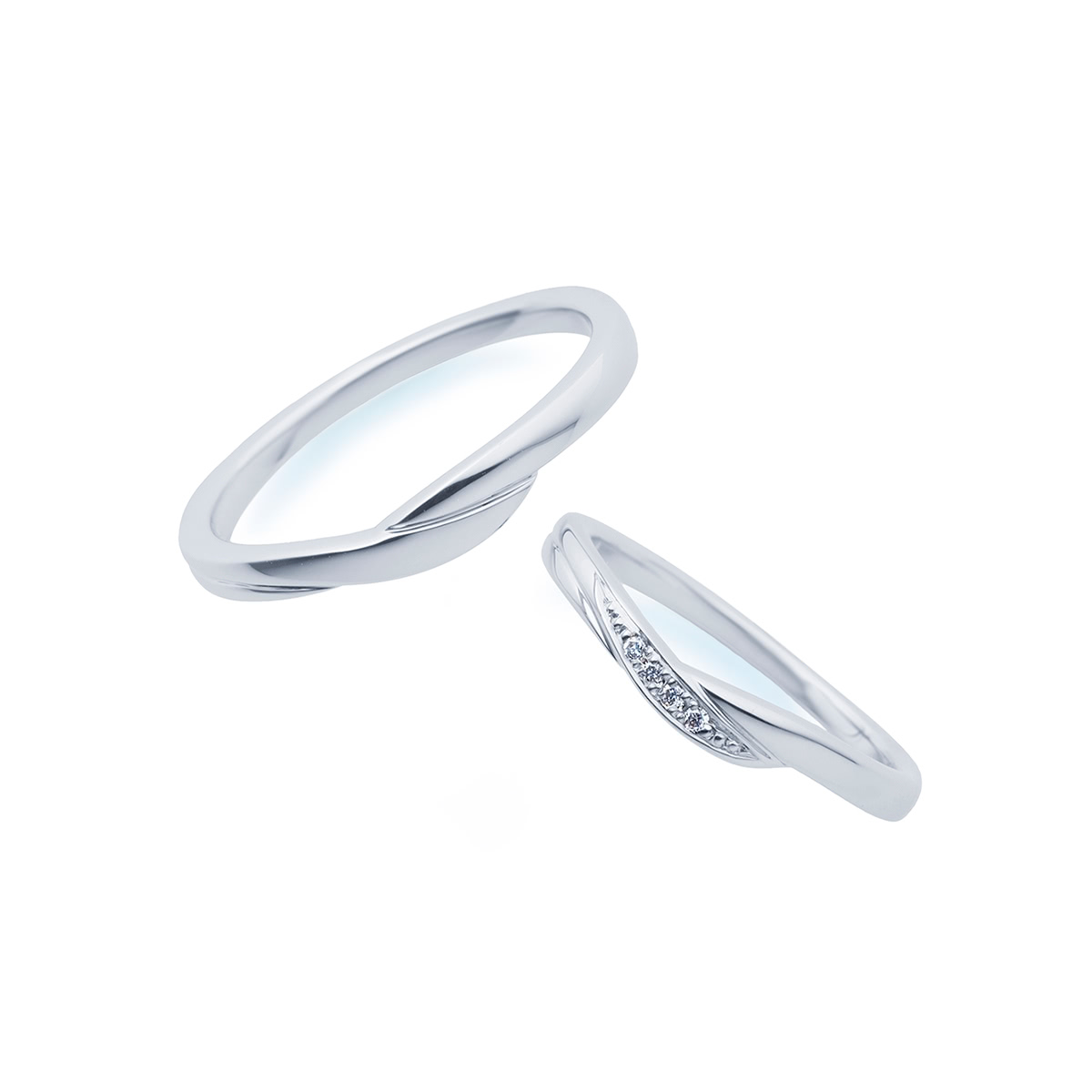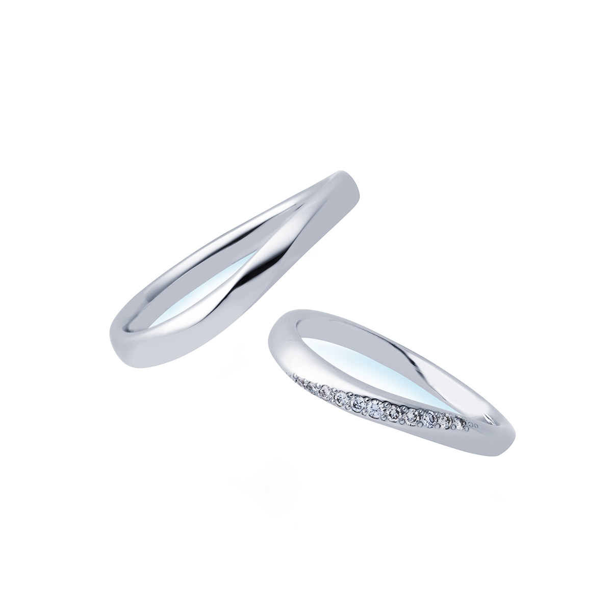 指に寄り添うような曲線を描いた凜とした美しさが魅力的な結婚指輪。