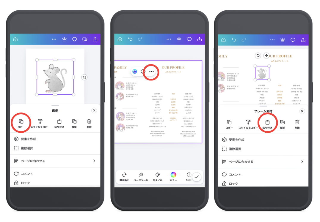 ③ 「貼り付け」を押して好きな箇所に移動してください