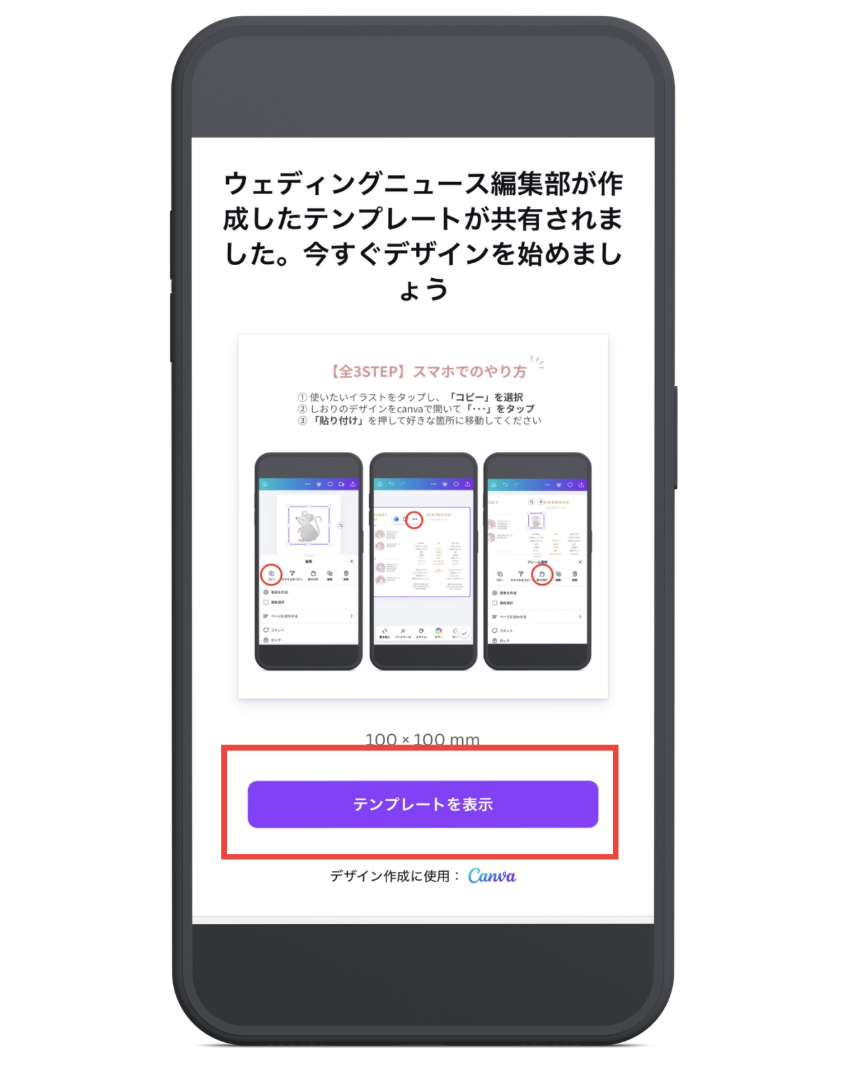 以下のボタンから「テンプレートを表示」をタップしてください。