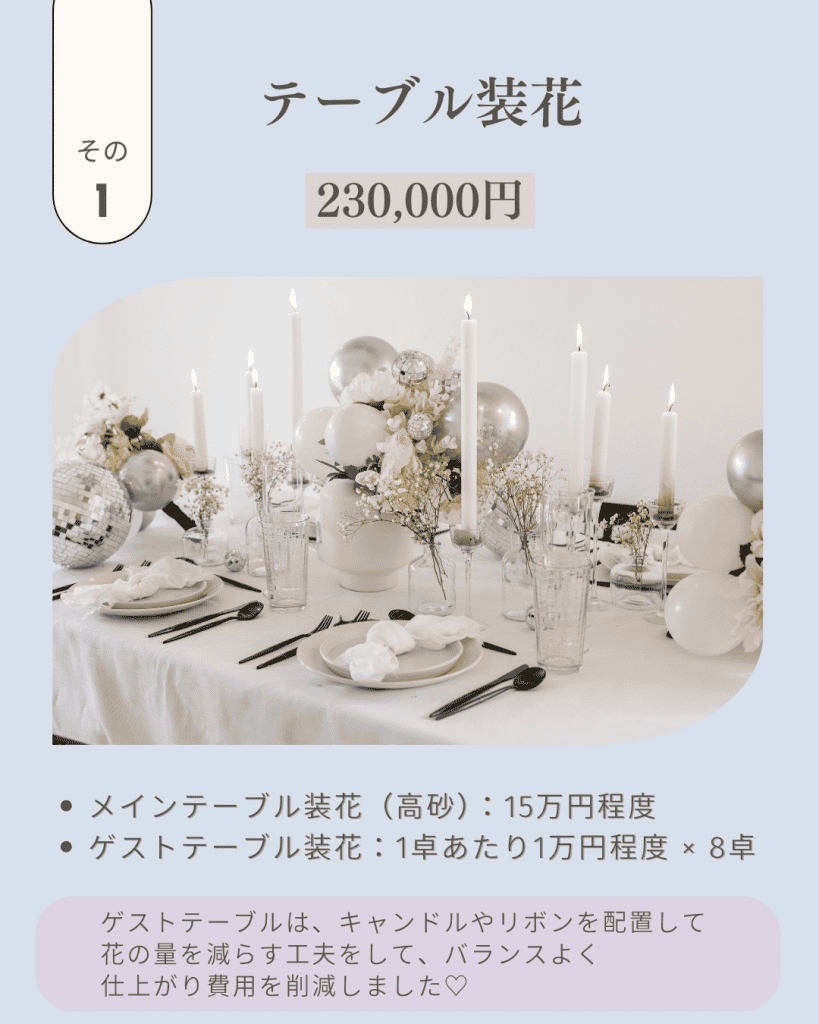 そこで、装飾にかかった費用について、各項目ごとに教えてください♡