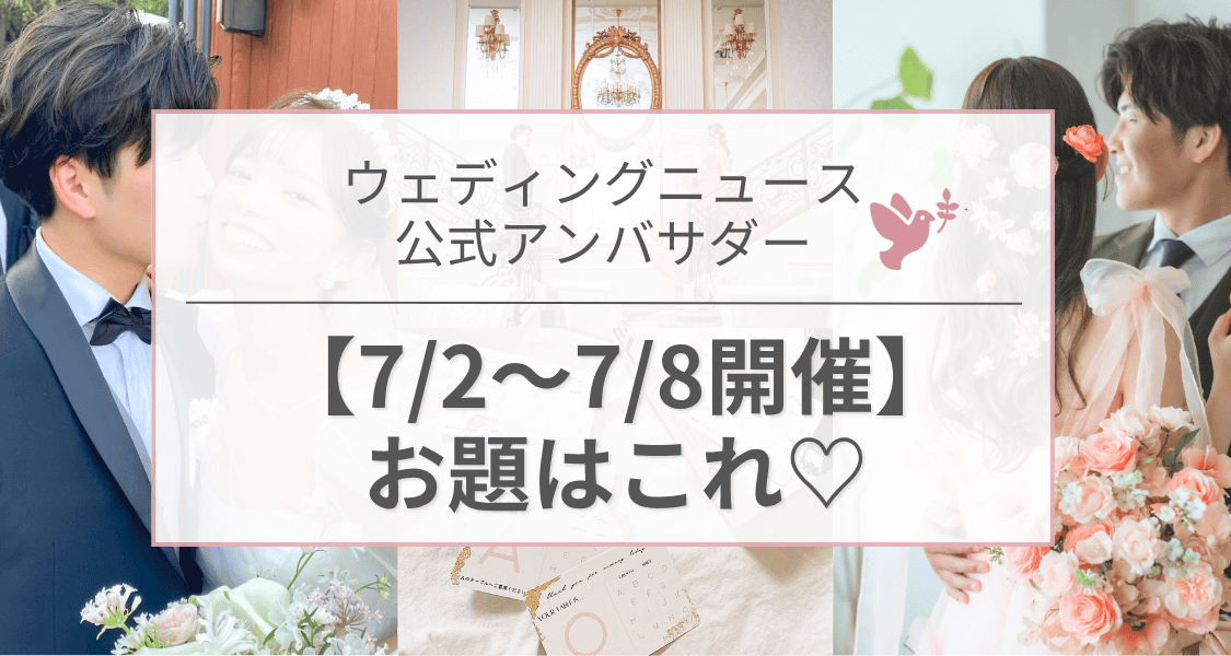 【7/2〜7/8】今週のお題は顔合わせしおり・ドレス試着・演出など全7種類!