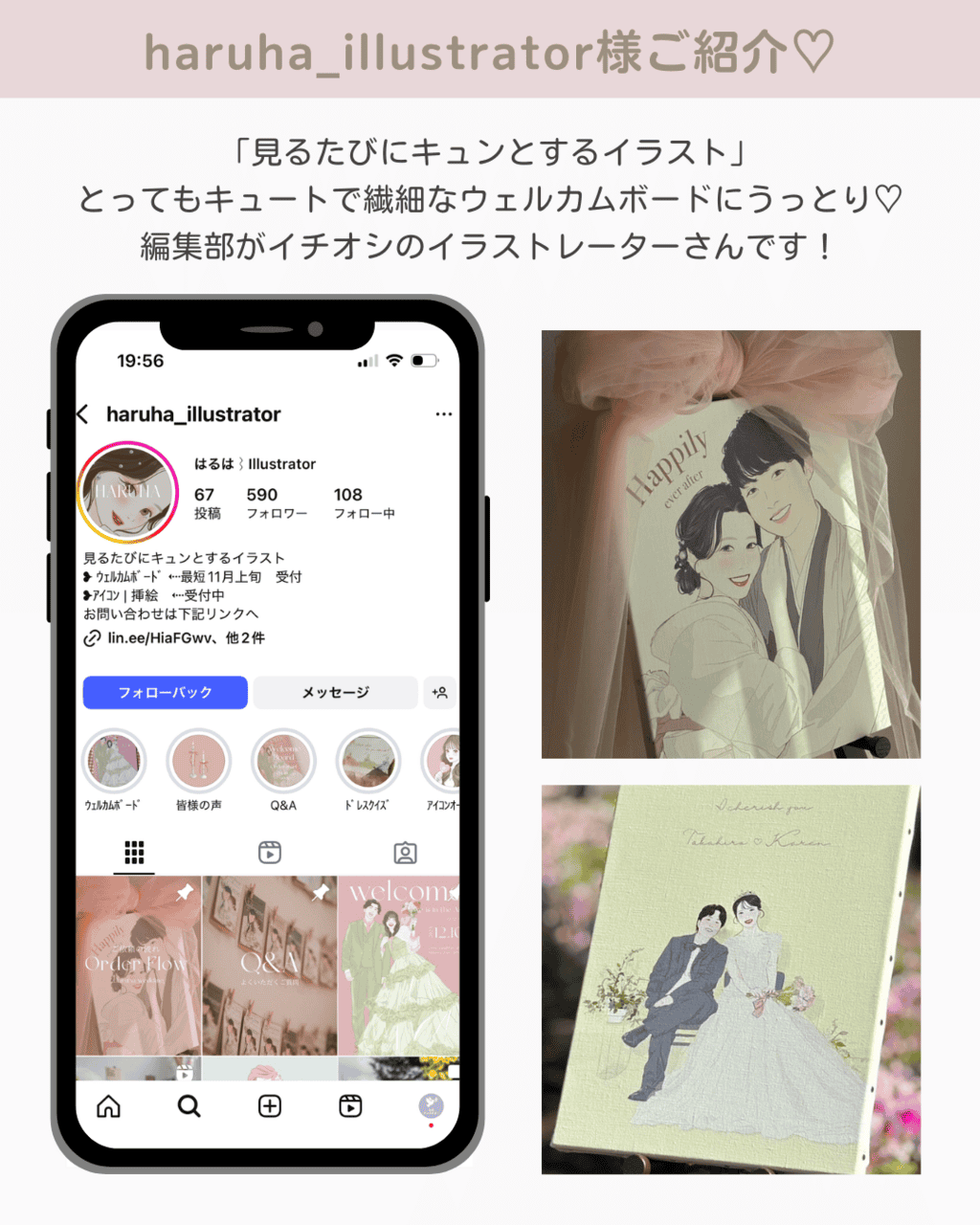 Haruhaさんは、可愛いらしい優しいタッチや色合いが魅力で、おしゃれ花嫁さんたちからも人気のイラストレーターさんです♡
