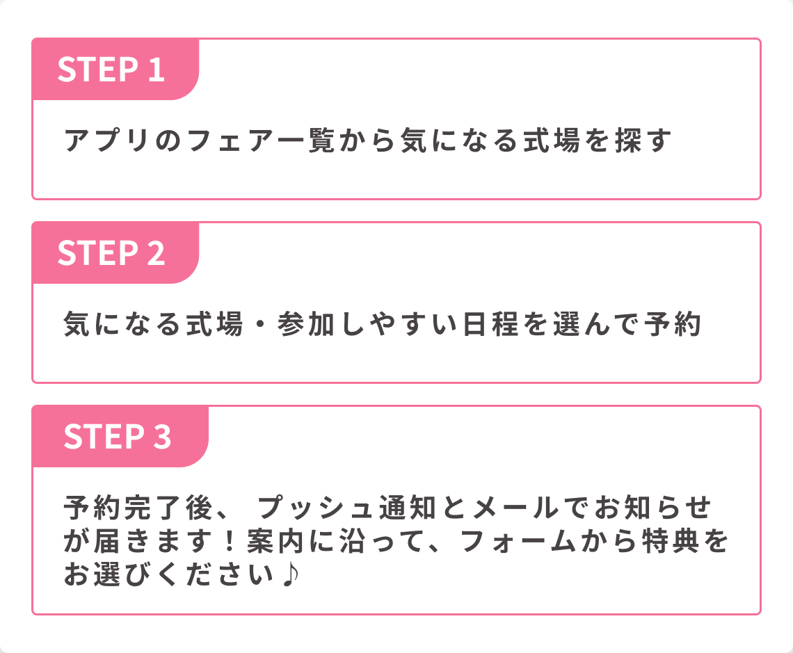 式場を探しているなら、ウェディングニュースアプリからの予約がおすすめ!早速アプリからフェアを探してみてくださいね♡