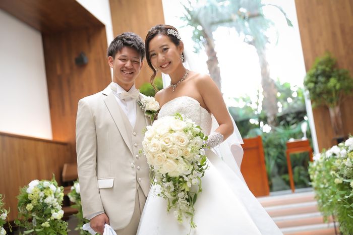 全体的にシックな印象でした。教会は正面がガラス張りで、下には皇居、奥にはビル街が望める開放的な場所で、とても清々しく青空の映える作りでした。披露宴会場も元々の色が濃くないので、自分たちの雰囲気作りもできるし、落ち着いた雰囲気の式場を望んでいる人にもおすすめだと思います。