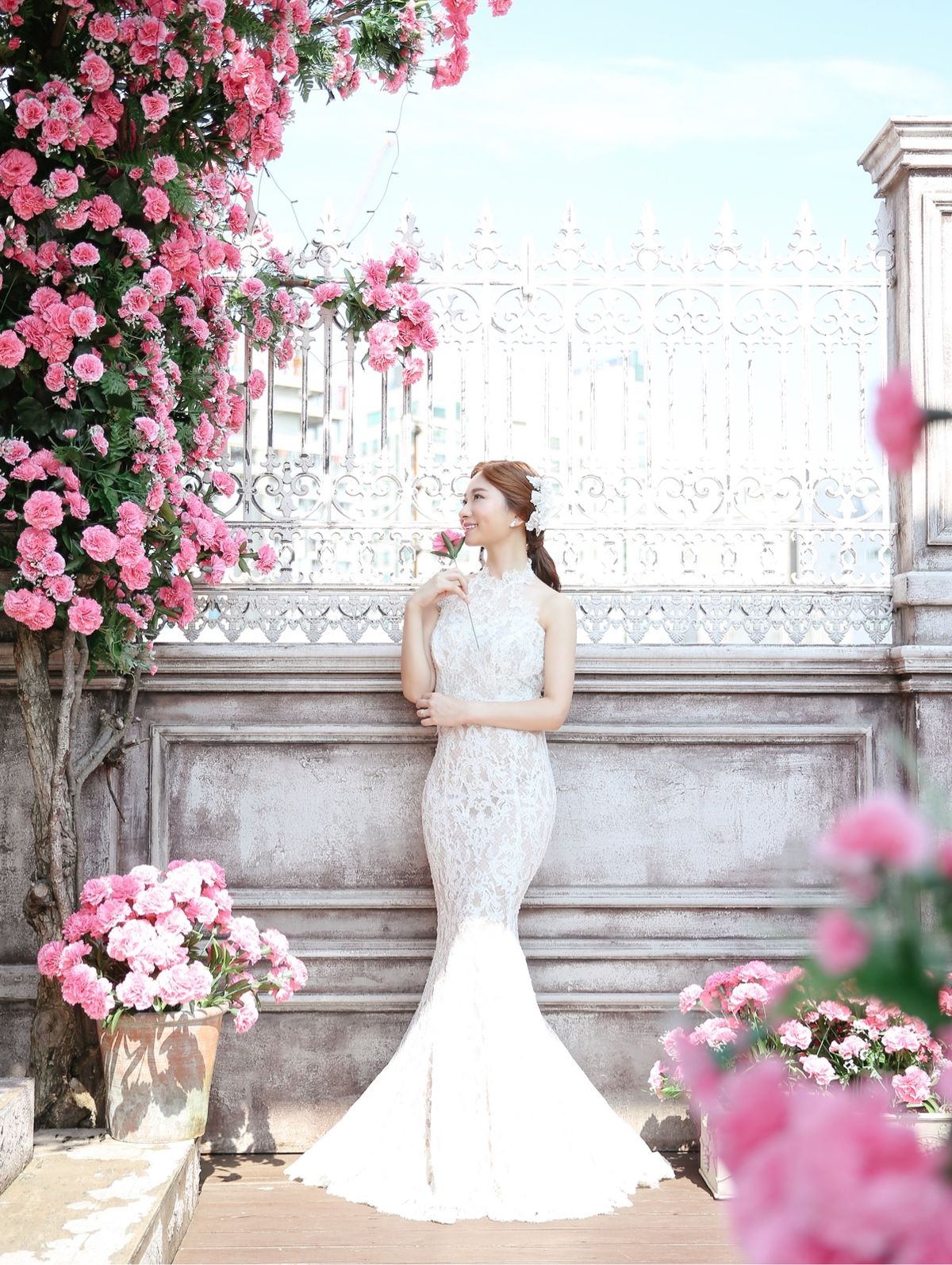 大胆にもドレスの前側が開き、大人の魅力全開のドレス♡大人っぽい雰囲気がありながらも、全身に花をまとっていて可愛らしさも忘れません!