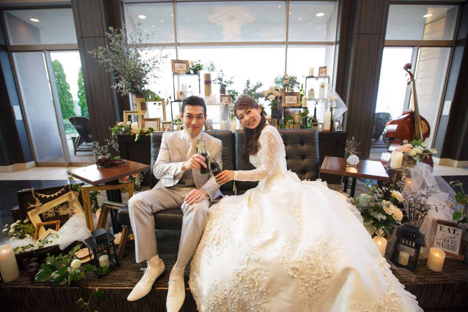 M:私たちが主役!にしたくなくて。皆が再会を楽しめるようにフォトブースを置いたり、ゲストと距離の近い披露宴にしたくて高砂をソファにしました。お料理も、誰もが楽しめるのは和食だろう!ということでこだわって奮発しました(笑)