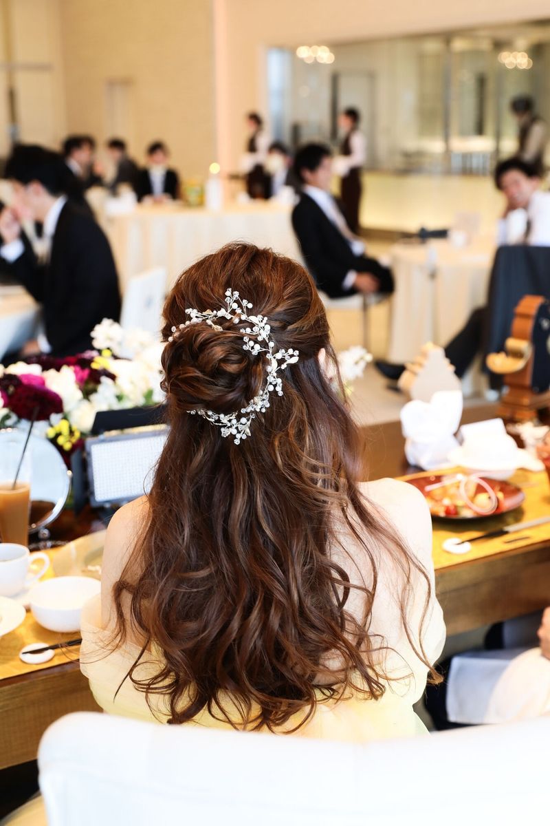 ハーフアップにしてお花をつけるのもナチュラルで可愛いですね*