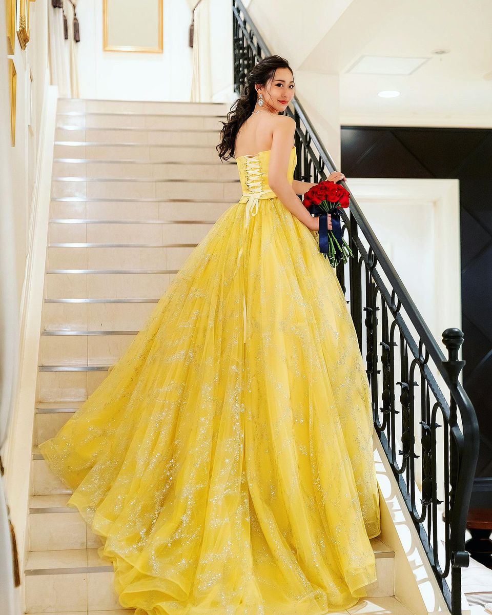 ベルと言えばやっぱりオフショルダーのイエロードレス♡