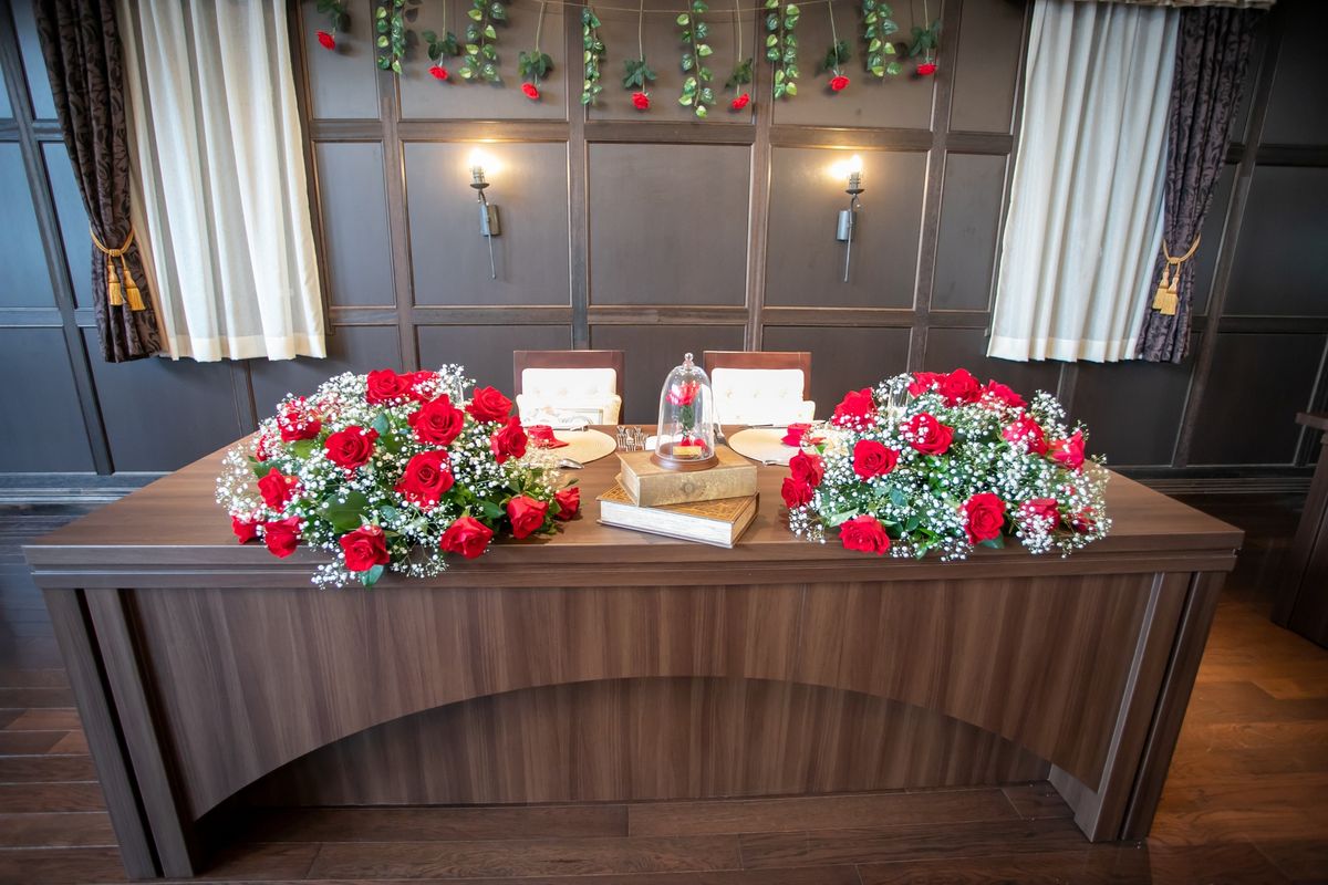 美女と野獣と言えばやっぱりバラ♡真っ赤なバラをバランスよく飾りましょう♪